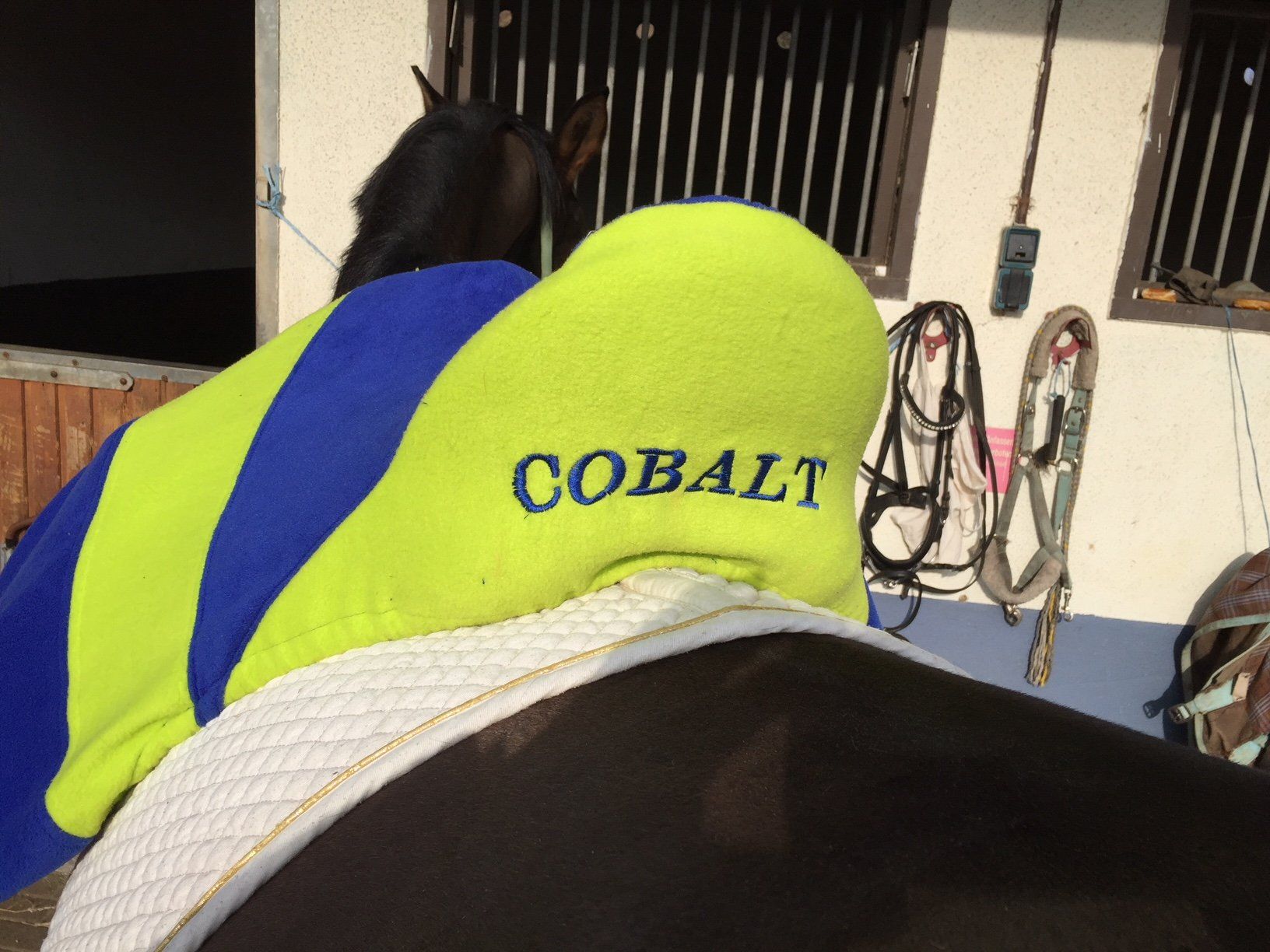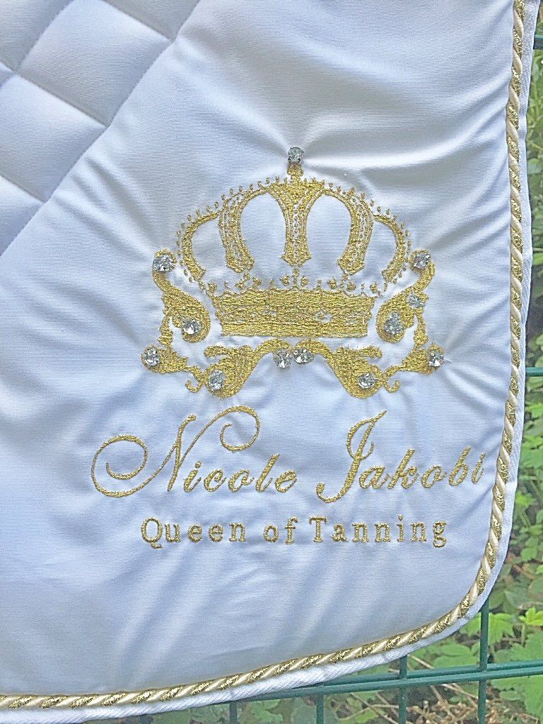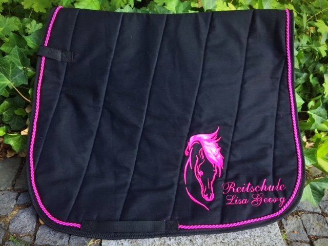Fliegenmütze, Halfter und Taschen mit Name bestickt, Sattelschoner, Dressur und Spring-Schabracken für Pony und WB ( Warmblut) und und und.... .